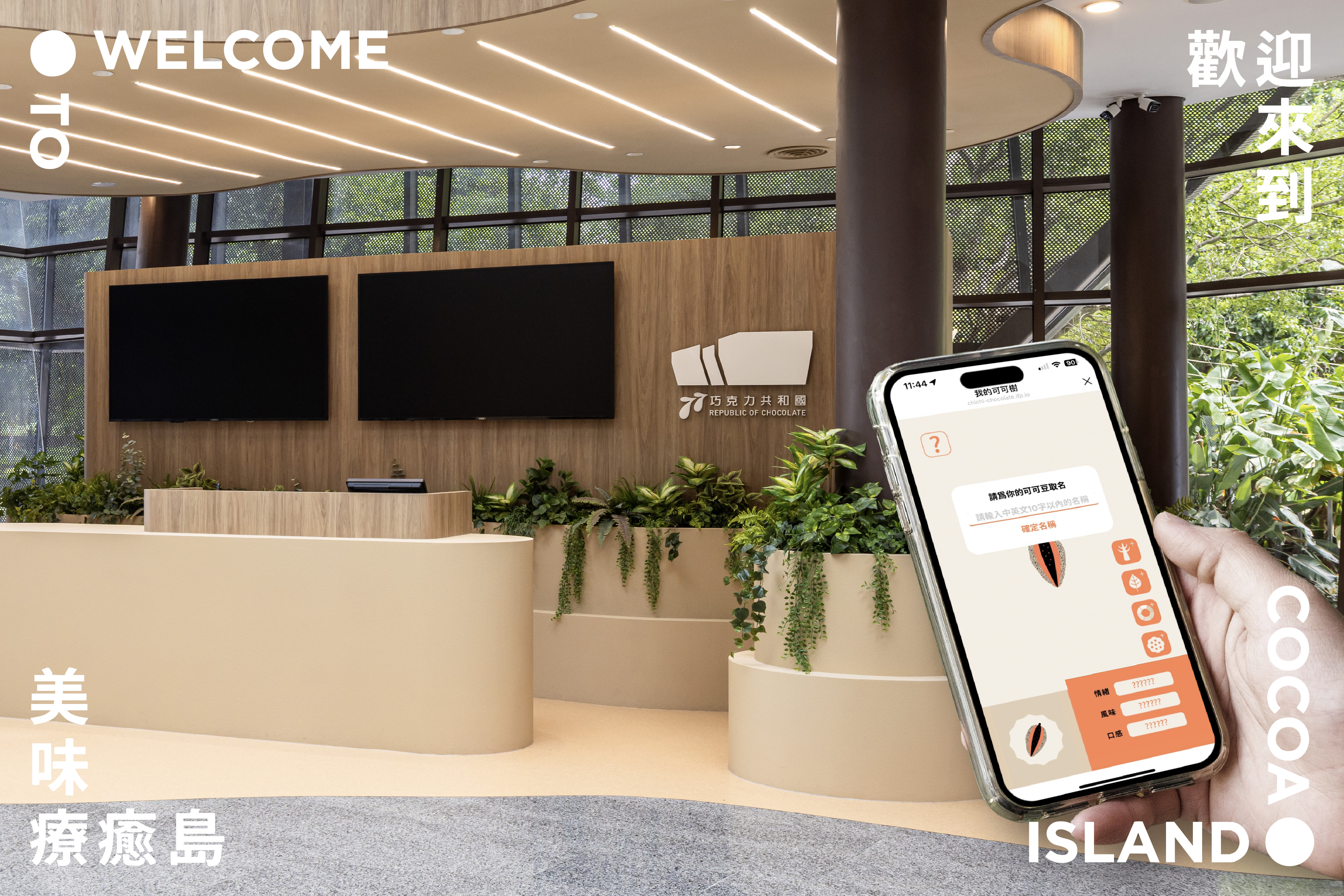 走進「美味療癒島」主展區,如同踏上一場獻給味蕾與心靈的感官探索旅程。展覽場域橫跨兩層樓,自一樓的「登島口」啟程,觀者透過手機、LINE官方帳號與NFC感應建立專屬的數位互動系統,蒐集可可豆、獲取養分,灌溉一棵屬於自己的可可樹。展覽融合故事情境與互動體驗,邀請每位「島民」培育出獨一無二的療癒之樹,種下回憶,也深植與品牌之間的情感連結。